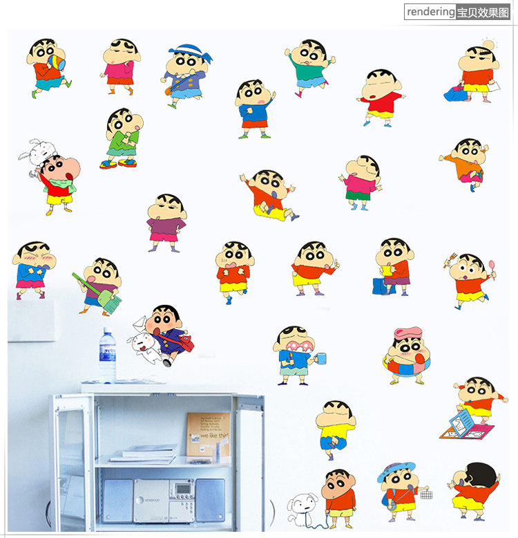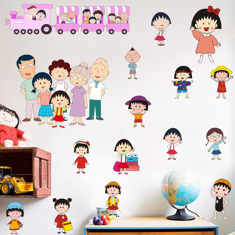 樱桃小丸子卡通墙贴画儿童房床头幼儿园装饰品可移除行李箱墙贴纸