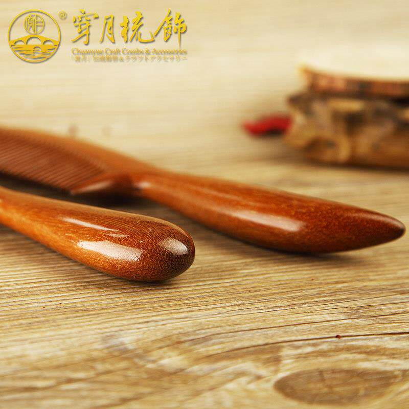常州梳篦穿月红檀木梳子卷发梳直发按摩木质头细齿刻字送女神木梳 - 奇游工厂