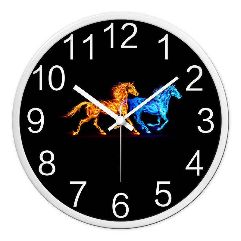摩门艺术挂钟动物马图案钟表客厅创意卧室静音时尚简约时钟圆形钟 - 海陆风潮流精选店