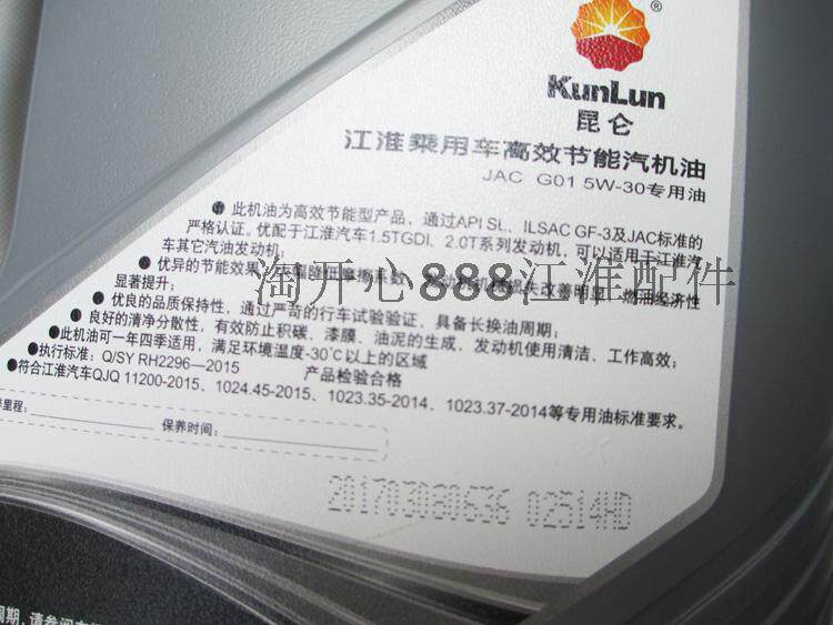 江淮同悦和悦RSA30宾悦瑞风S3S5瑞鹰机油润滑油5W-30 4L四季机油 - 淘开心888江淮配件