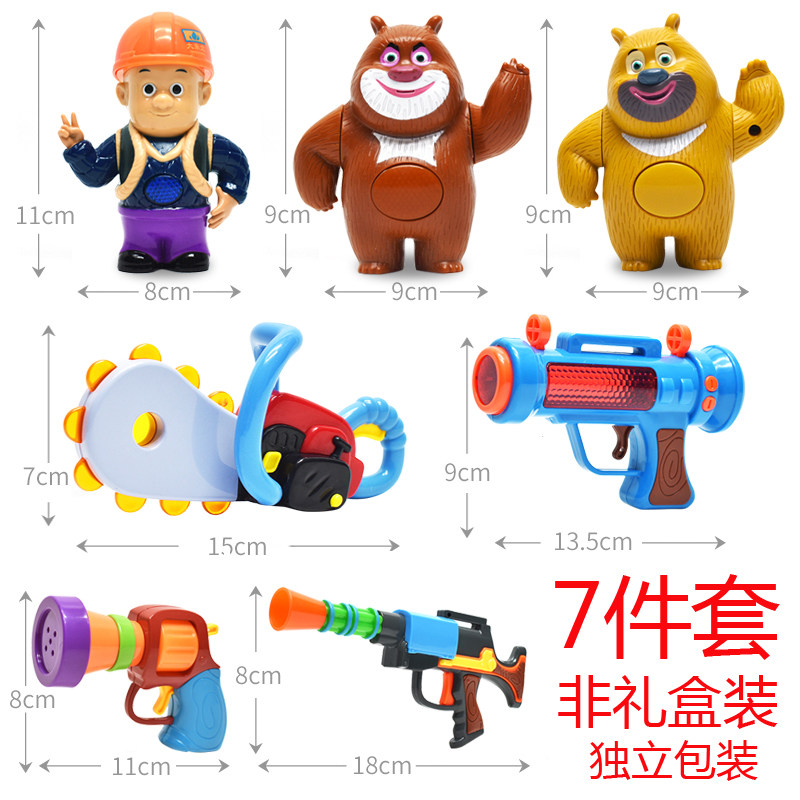 迷你款 光头强Q版声光小公仔人偶 熊大熊二音乐灯光小玩具枪 套装
