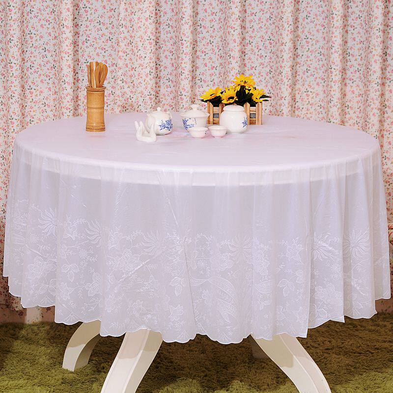 惊爆圆形椭圆形PVC压花桌布薄款防水免洗防油防烫纯白 - 湖泊云水社