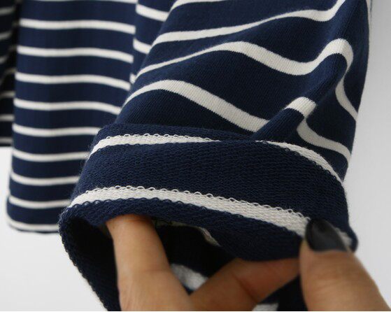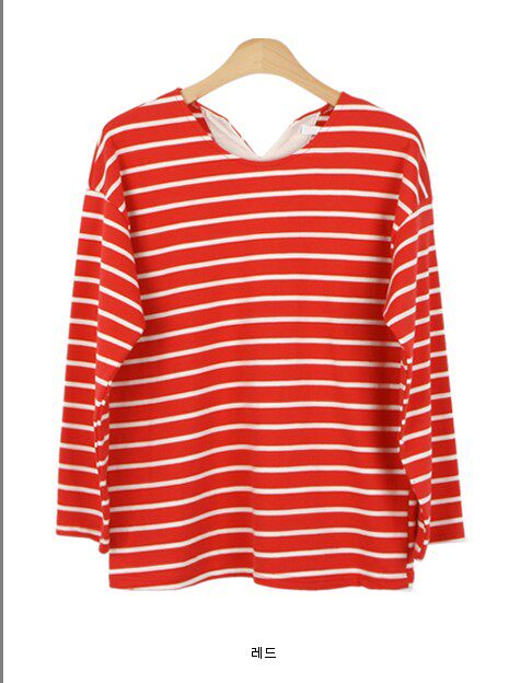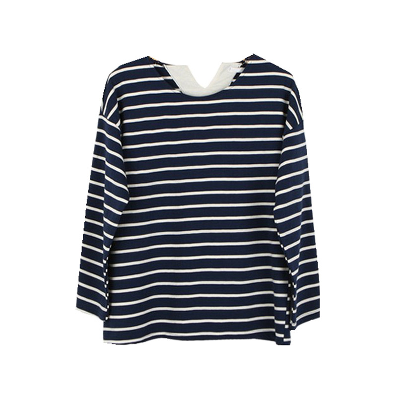 k503韩国女装代条纹宽松春秋女长袖卫衣t恤打底衫毛圈棉质现货 - Mimis villa 米米薇拉韩国女装