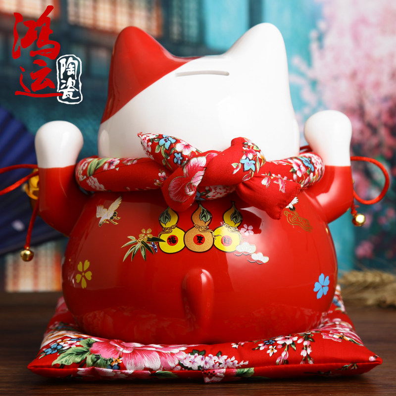 招财猫摆件 店铺开业大号日本招财猫储蓄罐红色开运创意礼物 - 精品招财猫