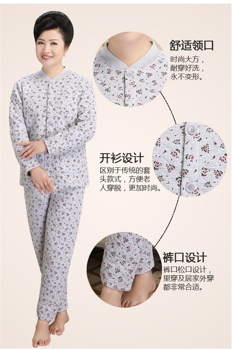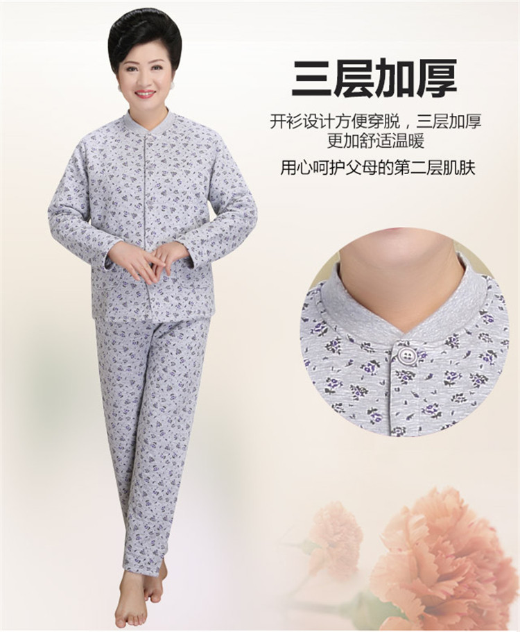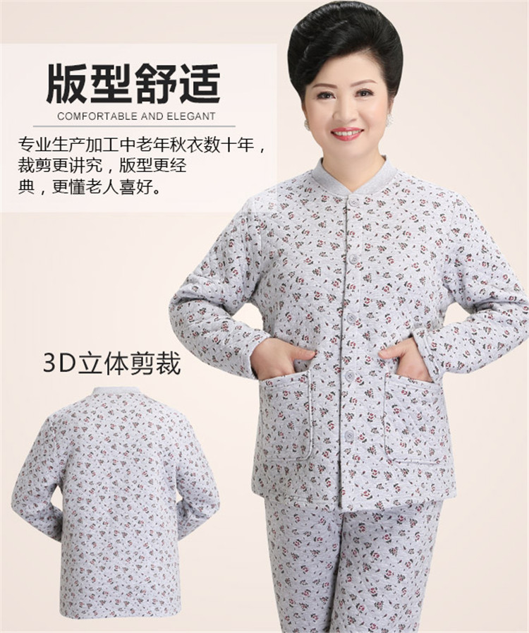 冬季老人女士纯棉三层加厚秋衣秋裤全棉开衫中老年人保暖内衣套装 - 丛林内衣服饰企业店
