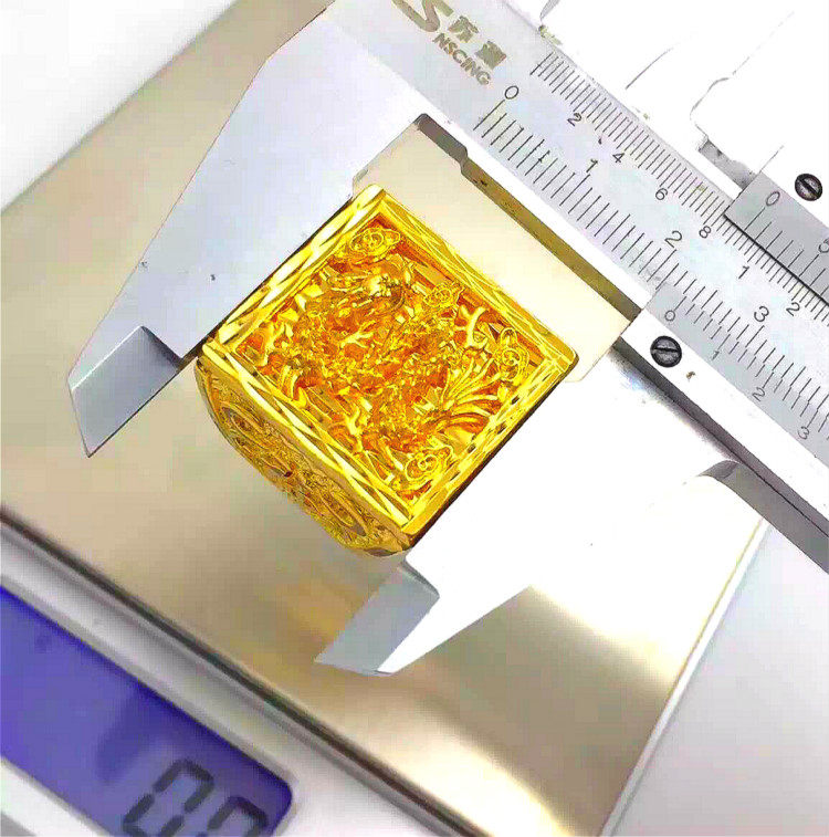 不褪色镀金戒指男龙头方戒镀黄金指环加重霸气老板特大沙金戒子 - 金多多沙金饰品