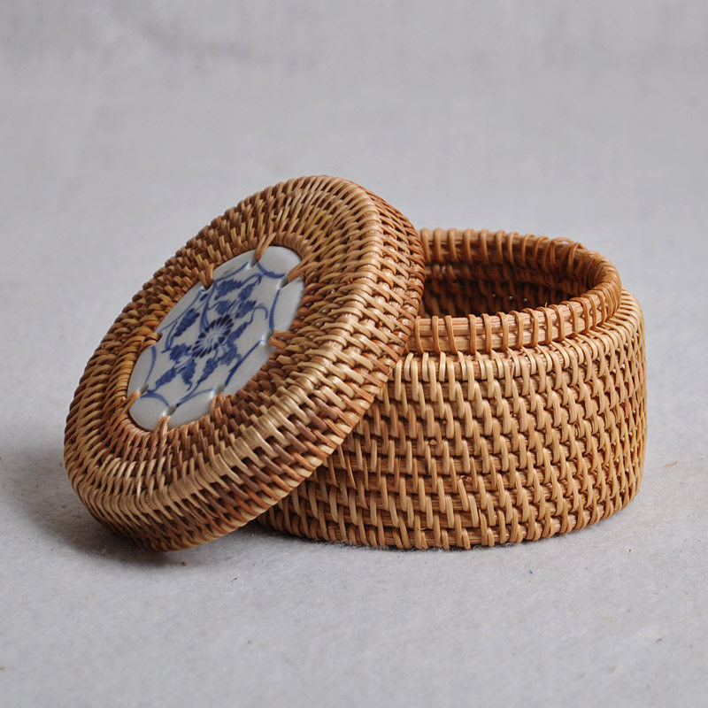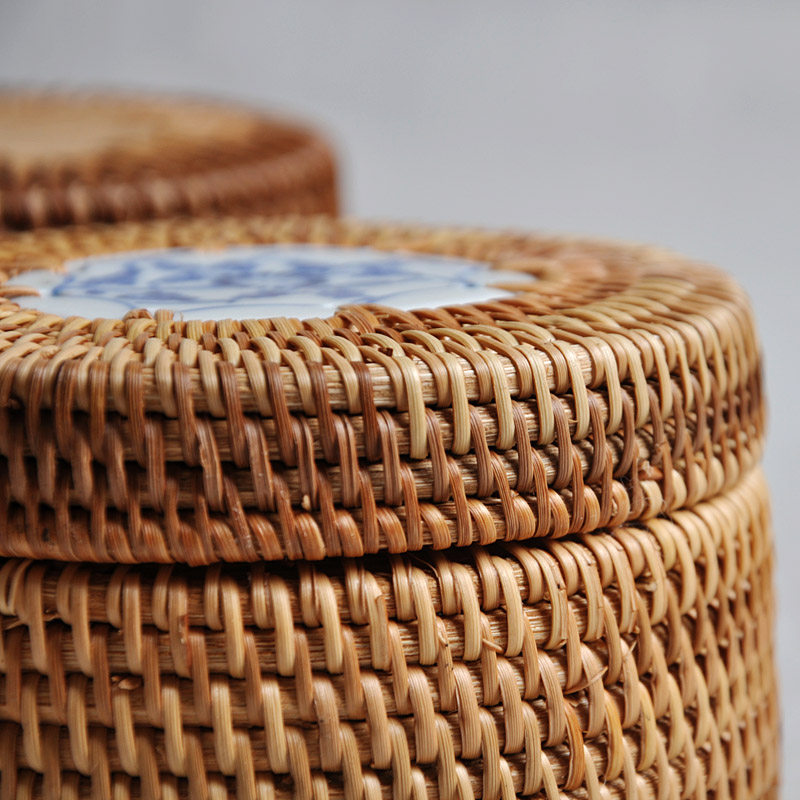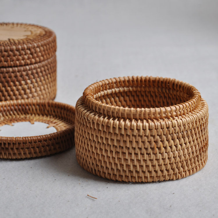 云滇包装 越南纯手工艺品 秋藤圆盒 沱茶盒/存茶盒/收纳盒/针线盒