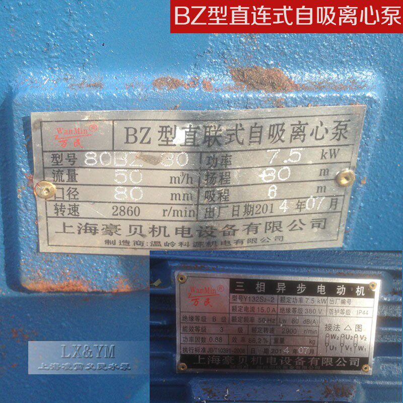 万民水泵7.5kw直联式自吸离心泵 卧式离心泵 清水离心泵 80BZ-30 - tb3543123443