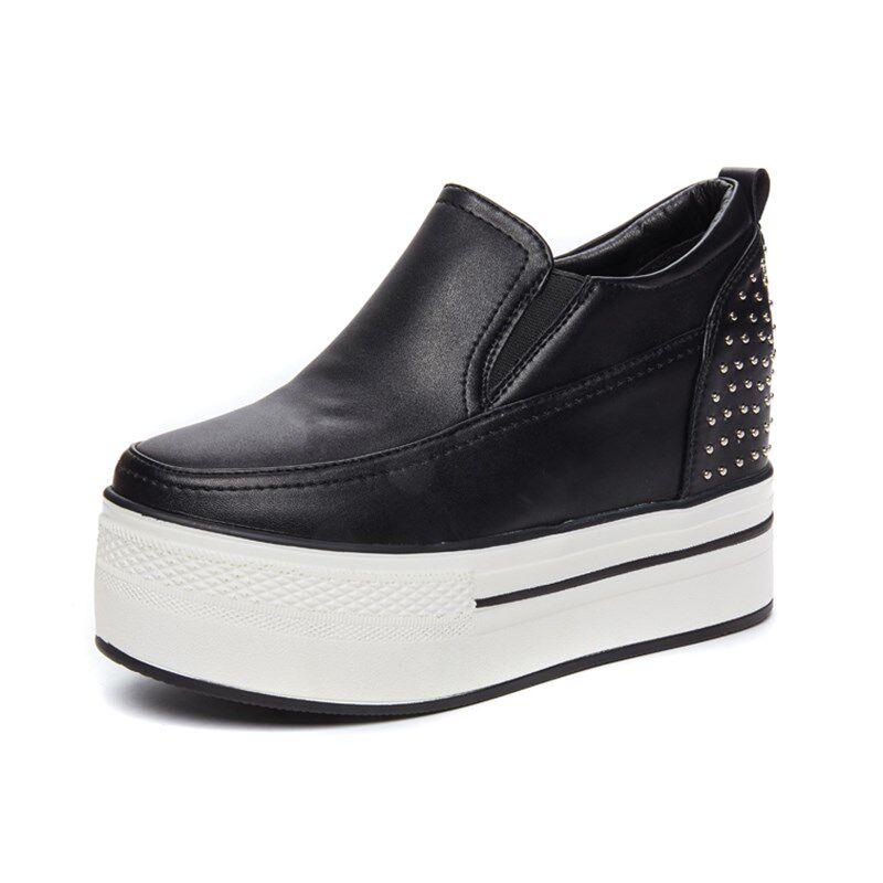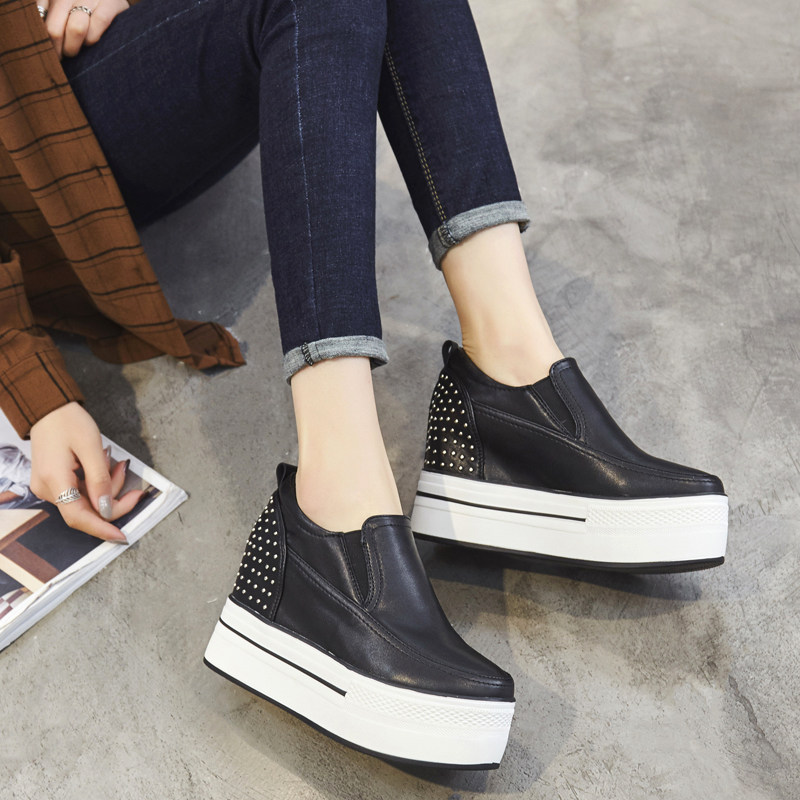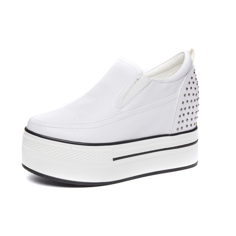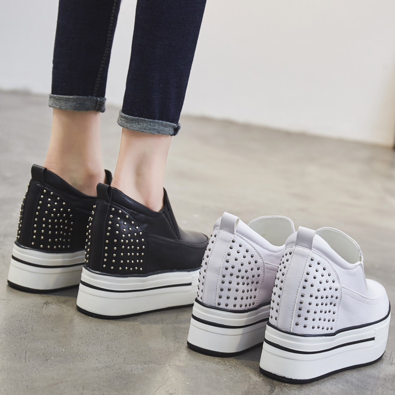 春秋内增高10CMm松糕厚底鞋低帮鞋单鞋铆钉白色英伦 圆头套脚女鞋 - d[s406835233]