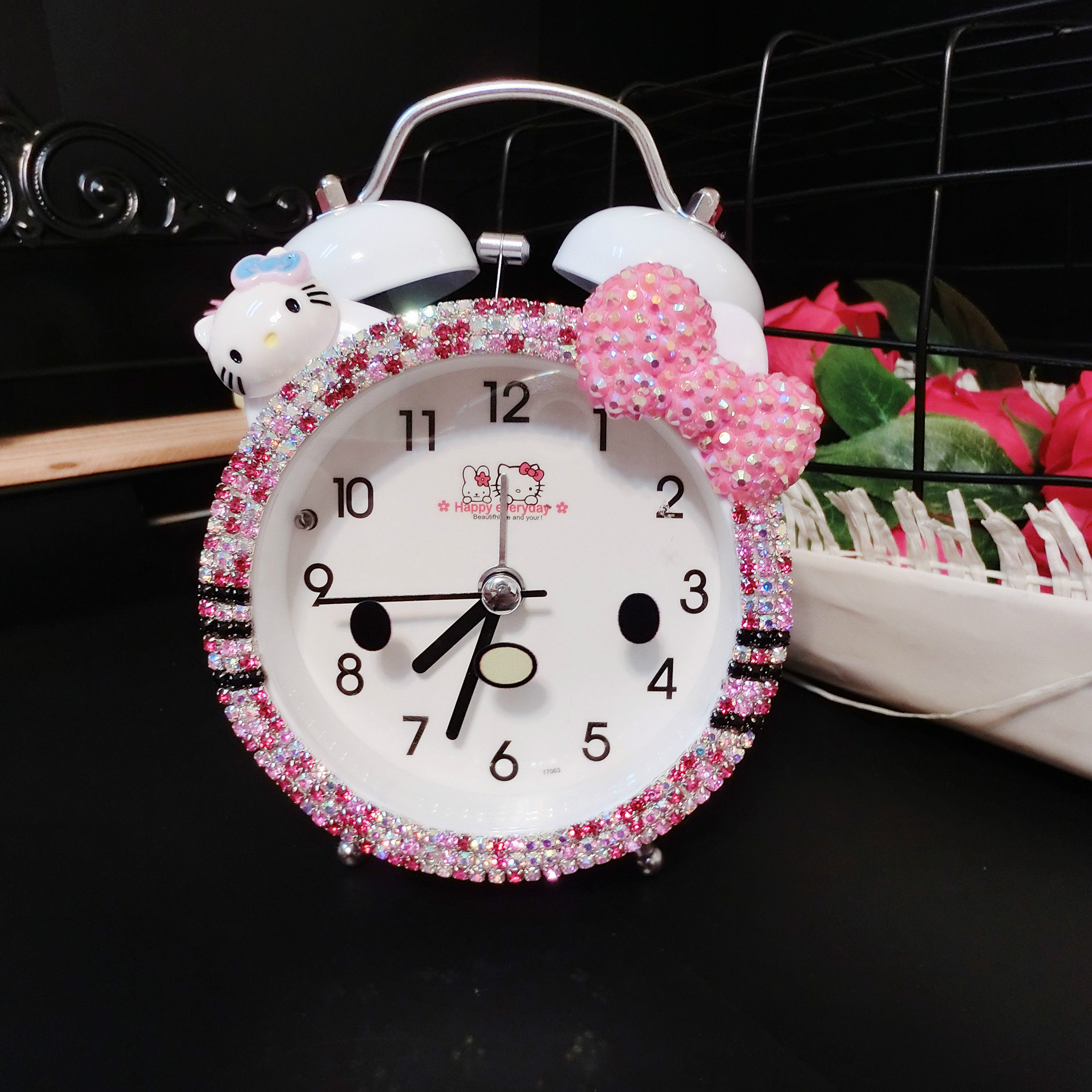 静音可爱男孩女孩创意卡通闹钟学生用儿童专用床头闪钻个性懒人