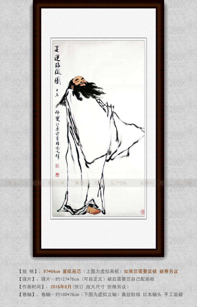 纯手绘国画名人字画名家书画仿范曾条幅人物挂画心水墨灵运临风图 - 寅德轩书画手绘