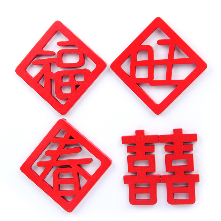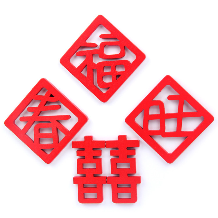 春节喜庆红色婚庆双喜冰箱贴中国风磁贴创意木质福旺春文字吸磁贴 - 萌朵朵创意冰箱贴