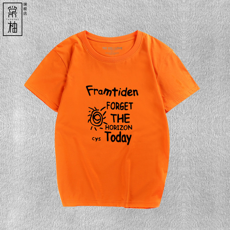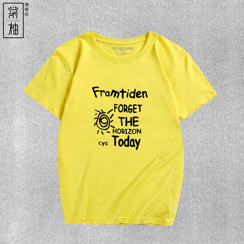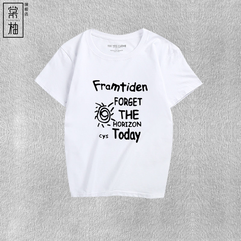 夏装新款时尚今天忘记地平线短袖男女情侣休闲字母印花纯棉t恤衫 - 棠柚旗舰店