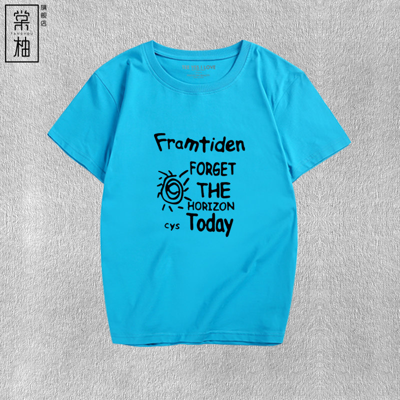 夏装新款时尚今天忘记地平线短袖男女情侣休闲字母印花纯棉t恤衫