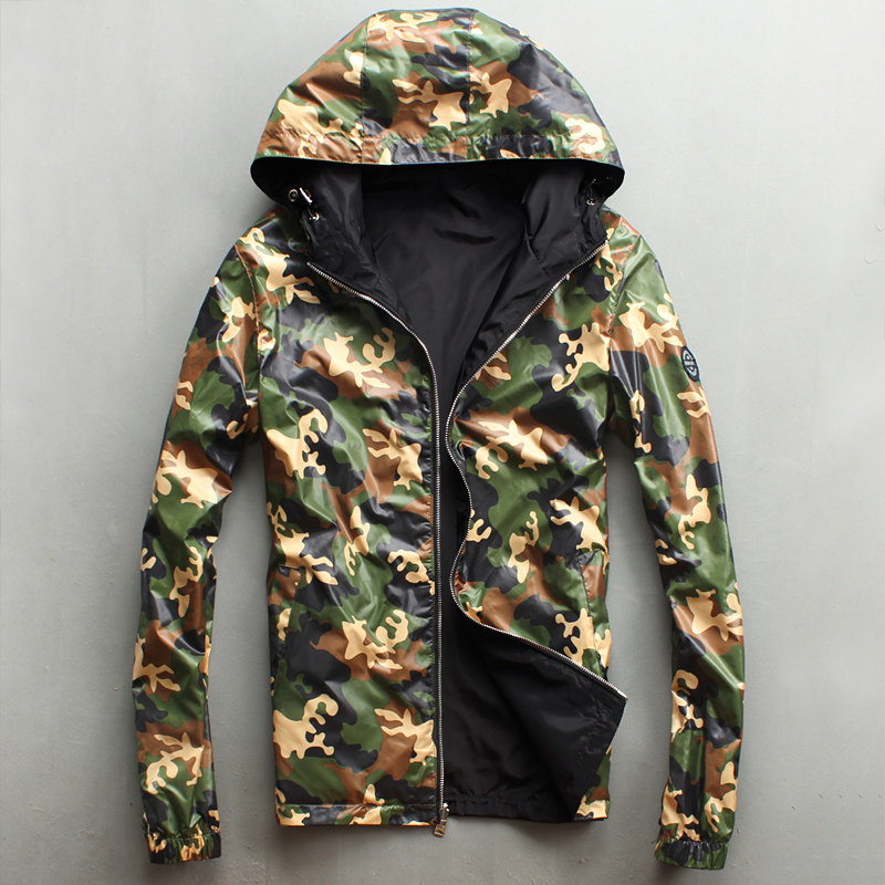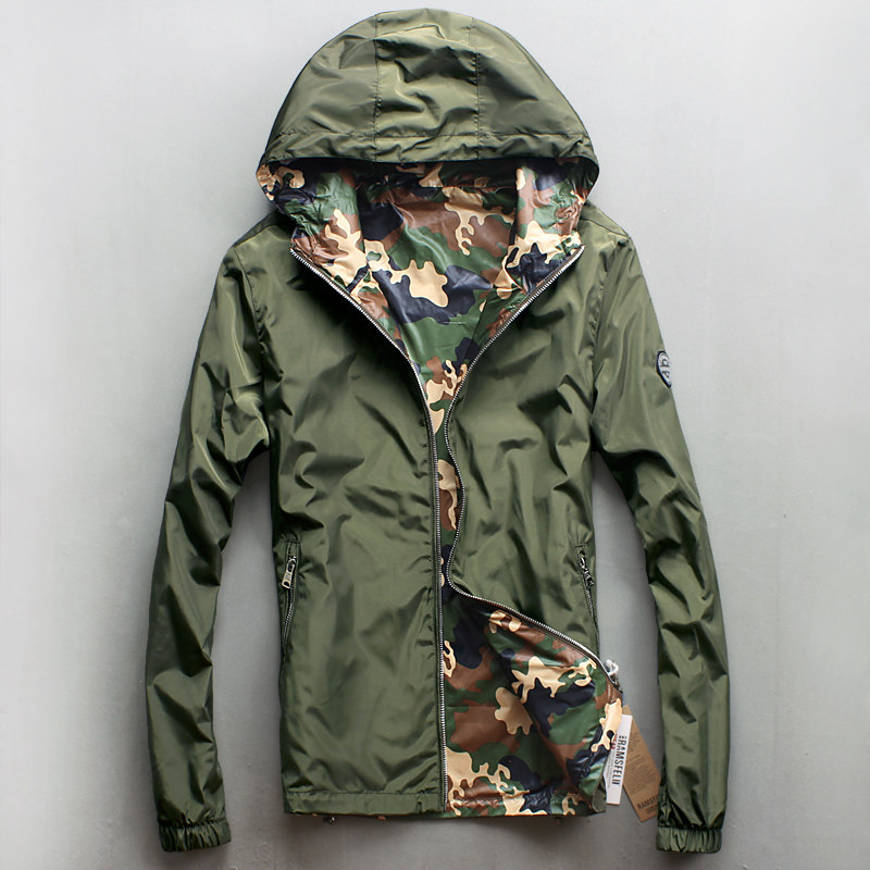双面穿迷彩夹克青年男外套秋季原创休闲连帽夹克风衣潮流男装复古 - 子霖服饰