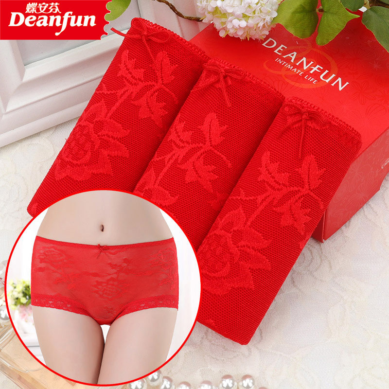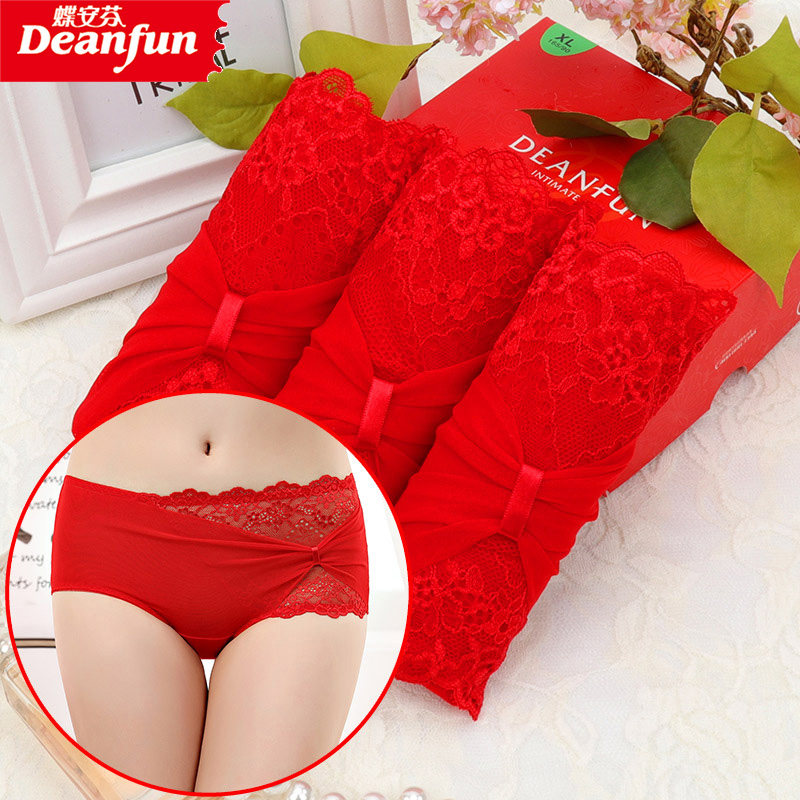 蝶安芬内裤女大红本命年女士内裤纯色莫代尔棉质中腰性感婚庆吉祥