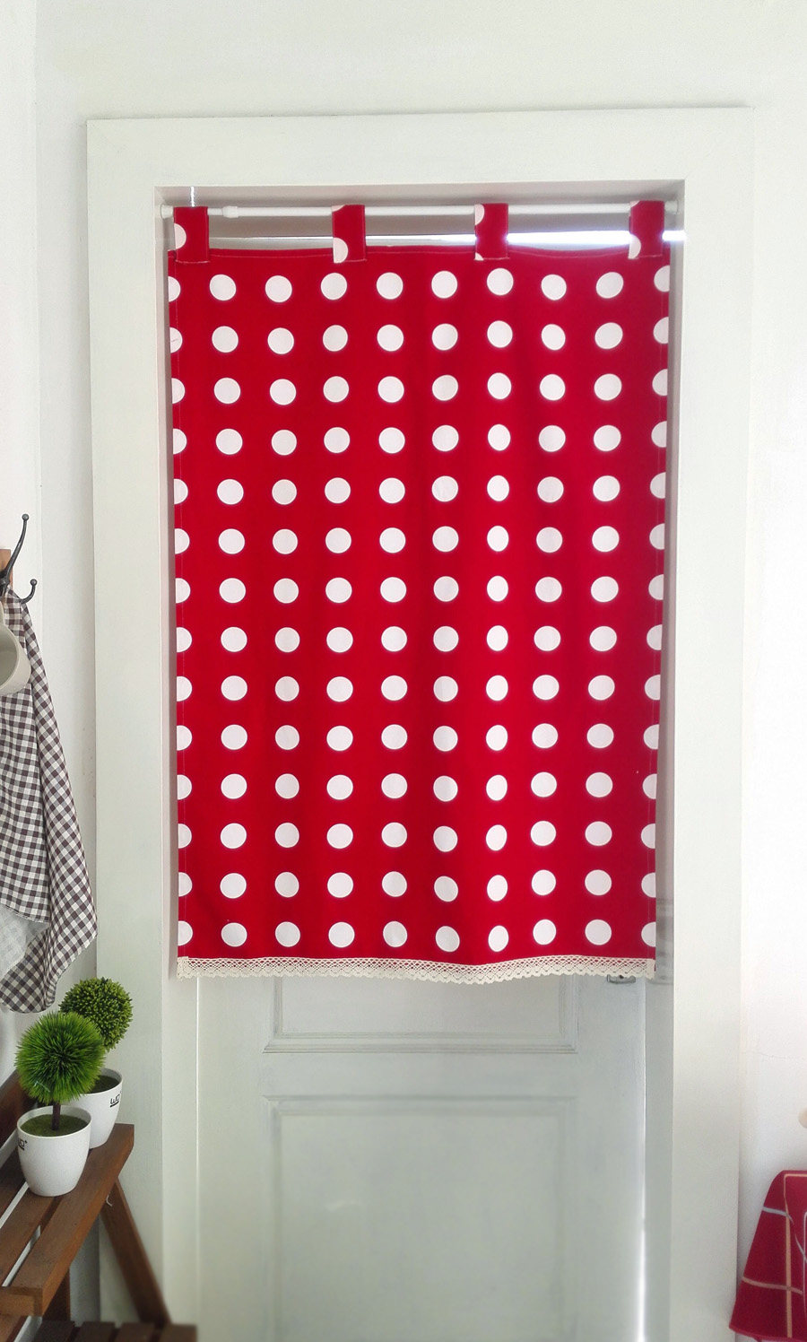 红色波点日式门帘布艺厨房半帘卫生间隔断帘装饰帘纯棉清新包邮 - 幔妙